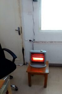 لعدم وجود تدفئة في المبنى موظفو صحة بني كنانة يضطرون الاستعانة بمدافىء كهربائية