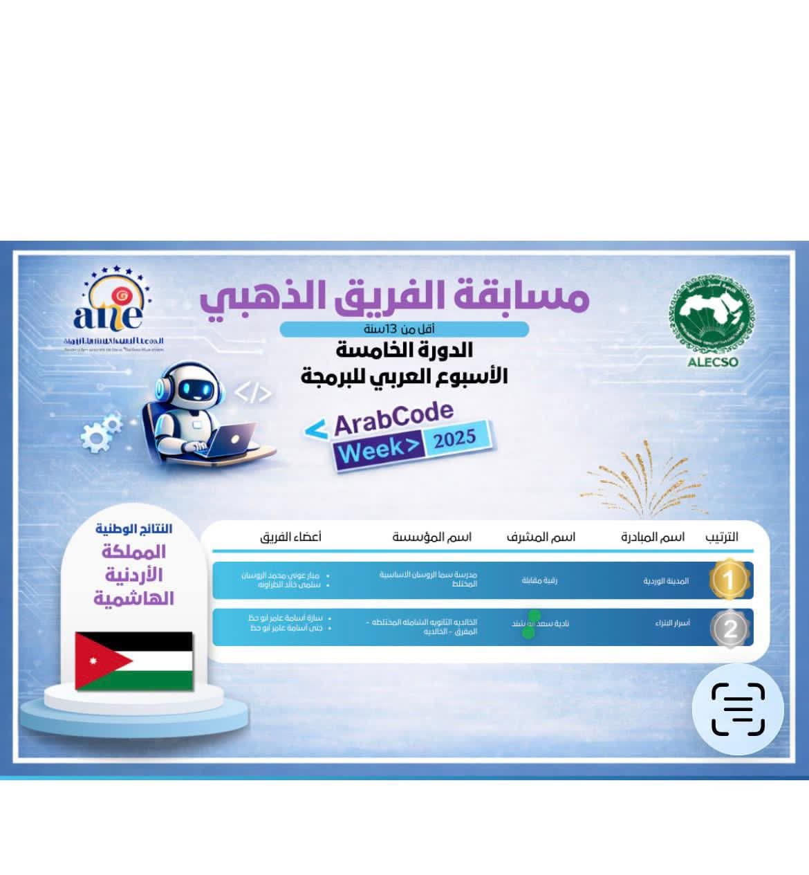 مدرسة سما الروسان تفوز بالمركز الأول بمسابقة “الفريق الذهبي” ضمن الأسبوع العربي للبرمجة 2025
