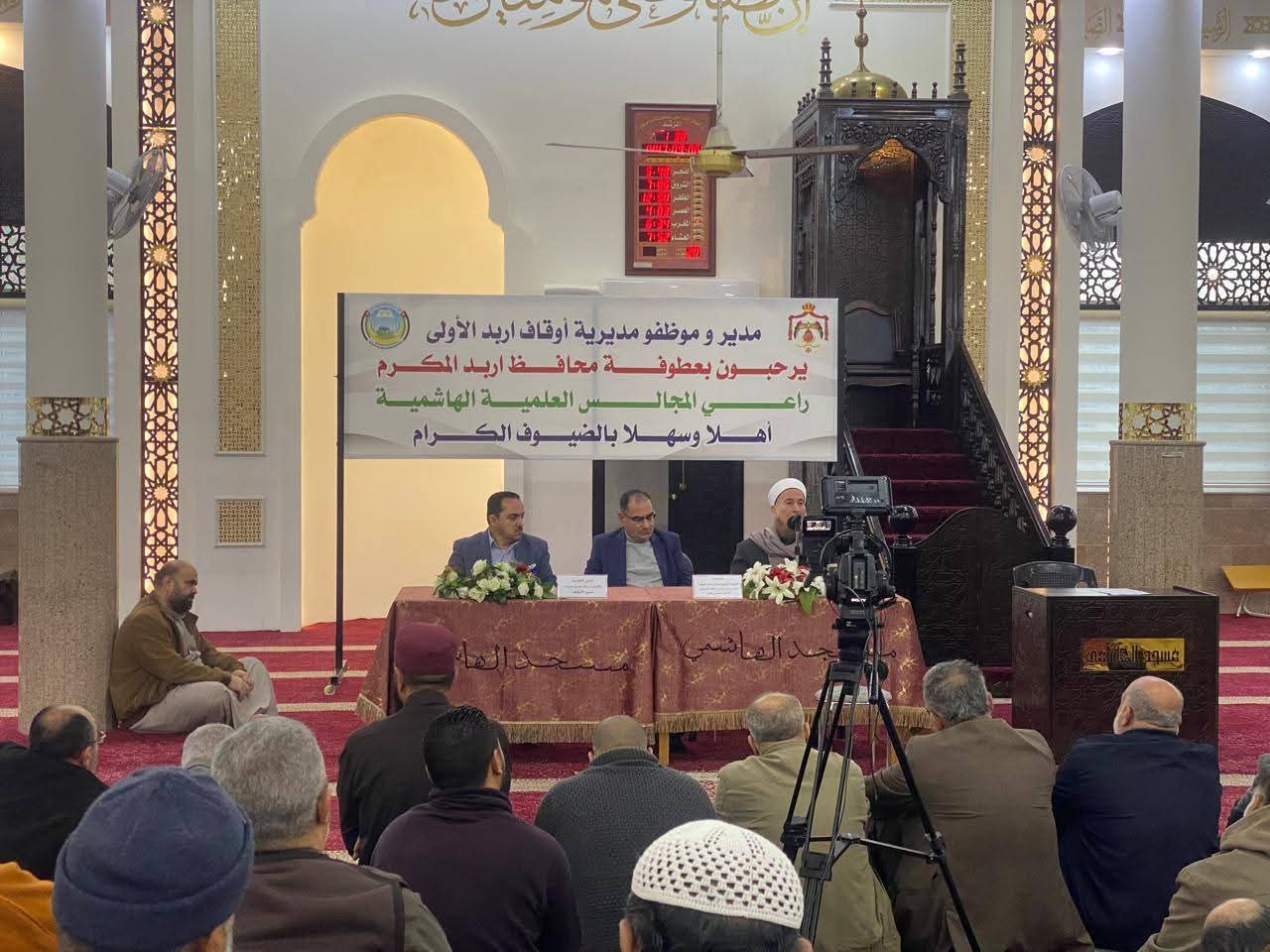 هرمنا- تحت رعاية كريمة من عطوفة محافظ إربد المكرّم، عقدت مديرية أوقاف إربد الأولى ظهر يوم الثلاثاء الموافق 24/2/2026، في المسجد الهاشمي، المجلس العلمي الهاشمي الأول لهذا العام، بعنوان:
