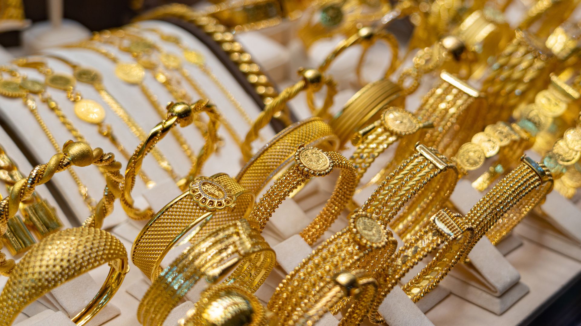 وحسب النشرة التي أصدرتها النقابة العامة لأصحاب محلات تجارة وصياغة الحلي والمجوهرات، بلغ سعر الغرام الواحد من الذهب عيارات 24 و 18 و 14 لغايات البيع من محلات الصاغة عند 123.3 و 95.8 و 74.8 دينار على التوالي.