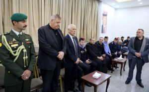 هرمنا- البلقاء- 10 آذار 2026- مندوبا عن جلالة الملك عبدالله الثاني وسمو والأمير الحسين بن عبدالله الثاني، ولي العهد، قدم رئيس الديوان الملكي الهاشمي يوسف حسن العيسوي، اليوم الثلاثاء، واجب العزاء إلى عشيرة السميرات بوفاة المرحومة مرسيل طعيمة السميرات أرملة المرحوم جريس سمعان السميرات وشقيقة النائب السابق رائد السميرات.