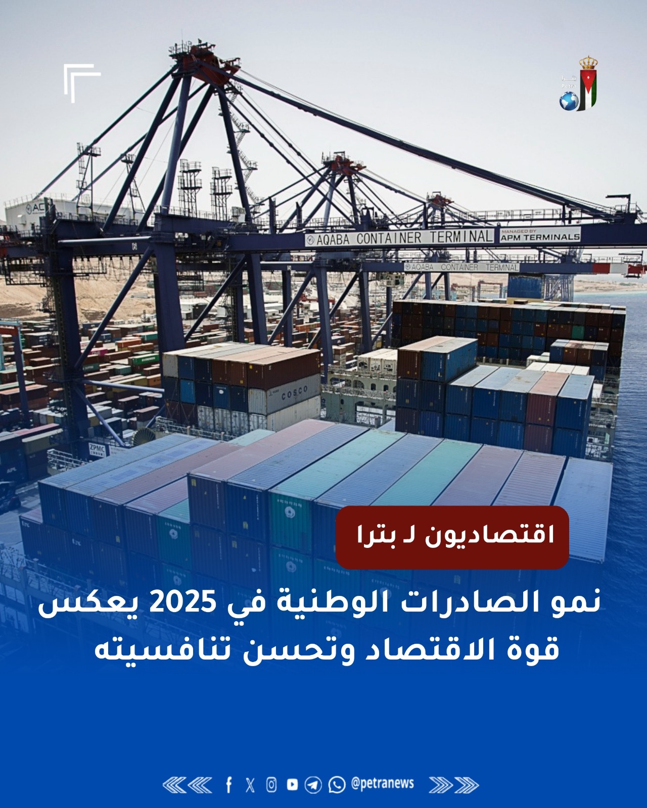 وأضاف إن من أهم المؤشرات الإيجابية لعام 2025 ارتفاع نسبة تغطية الصادرات الكلية للمستوردات لتصل إلى 52 بالمئة، مقارنة مع 50 بالمئة في عام 2024، مشيرا إلى هذا يعني أن الأردن أصبح يغطي أكثر من نصف فاتورة مستورداته من خلال صادراته، وهو مؤشر حيوي للاستقرار النقدي.
