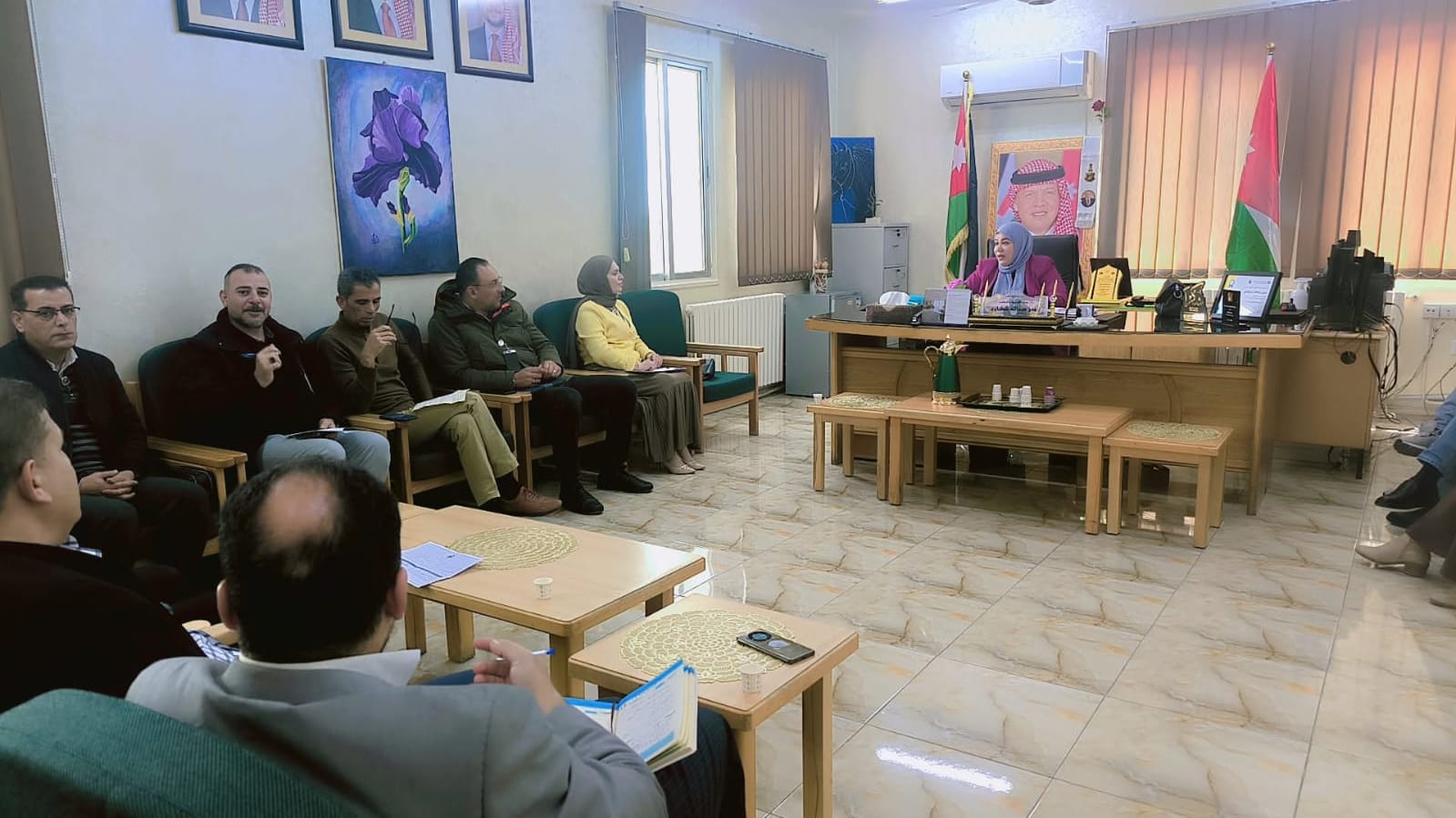 هرمنا- اجتمعت مديرة التربية والتعليم للواء بني كنانة، هدى الشطناوي، باللجنة التحضيرية للاحتفال بيوم العلم الأردني، والذي يصادف يوم الخميس 16/4، بحضور مديرة الشؤون التعليمية، ومدير الشؤون الإدارية والمالية مع الأقسام المعنية المتمثلة في قسم النشاطات والمالية والإعلام ومدير المخيم الكشفي في العشة حيث سيكون الاحتفال.
