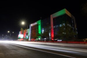 هرمنا- أضاءت شركة زين الأردن مساء اليوم مباني مقرها الرئيسي في شارع الملك عبدالله الثاني بالعاصمة عمان بألوان العلم الأردني، وعرضت العلم على الشاشة الضخمة في واجهة المبنى.