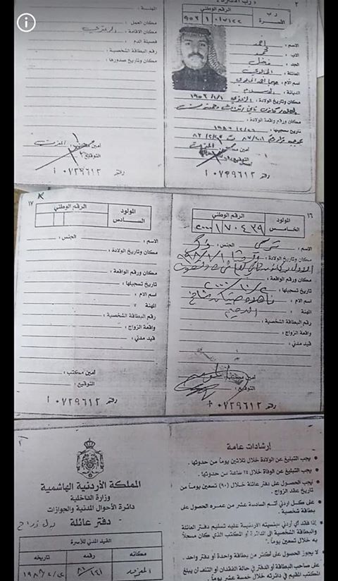 حيث ان ابن اختي الوحيد الشاب الذي ولد والده رحمة الله عليه في الأردن وفي البادية الأردنية مواليد الأب ١٩٥٣/١/١م في بلدة الزعتري محافظة المفرق اي قبل حوالي ( ٦٧عام) وتزوج بنساء اثنتين اردنيات الجنسية وانجب اولاد وبنات عدد ٧ وابن أختي، الوحيد مواليد عام ١٩٩٨م/م بلدة الزعتري وفي عام ٢٠٠٥م ذهب المرحوم زياره الى الجمهورية السورية الشقيقة حيث توفاه الله في حادث سير هناك ويمتلك منزل وأرض في بلدة الزعتري وفي عام ٢٠١٦م بناءا” على معلومات كيدية وردت من شخصآ ما الى المؤسسات الأمنية ان المذكور، سوري الجنسيه بعد ٦٧ عام مواطنة أردنية علمآ أنه حسب المعلومات تم مخاطبة السلطات السورية بذلك الأمر ولم يجدوا له اي صله او جذور هناك، سيدي اني ومن خلال كل شريف أردني وانسان ينطق الحق لمن يستحق ابعث اليكم هذه المظلمه، وأرجو ارجاع الرقم الوطني لإبن اختي وإخوانه واخو المرحوم شامس وأولاده.