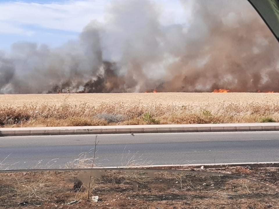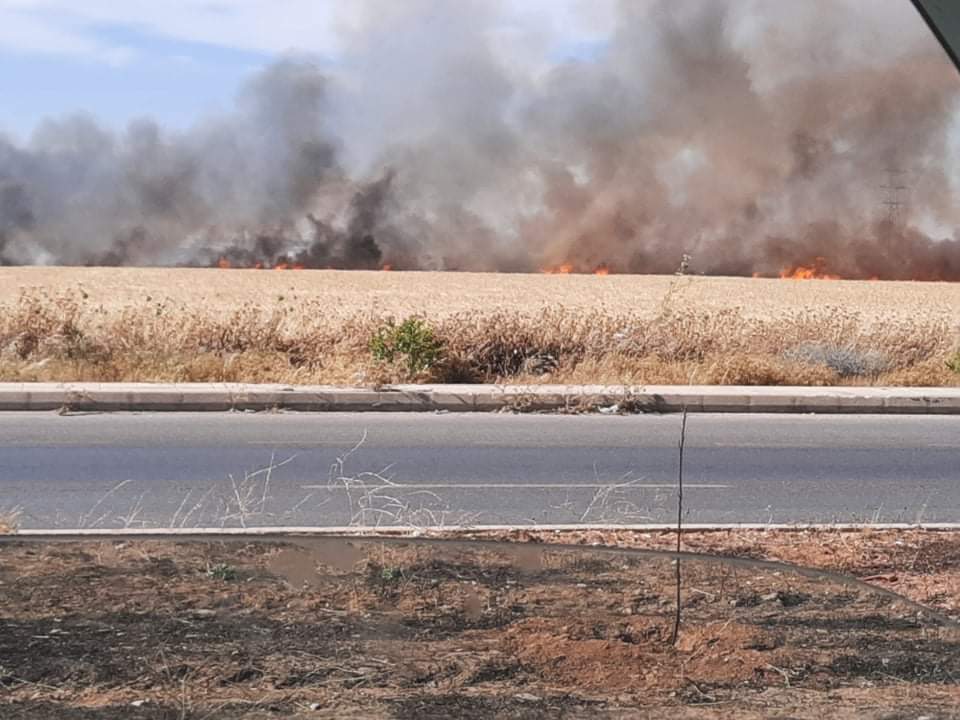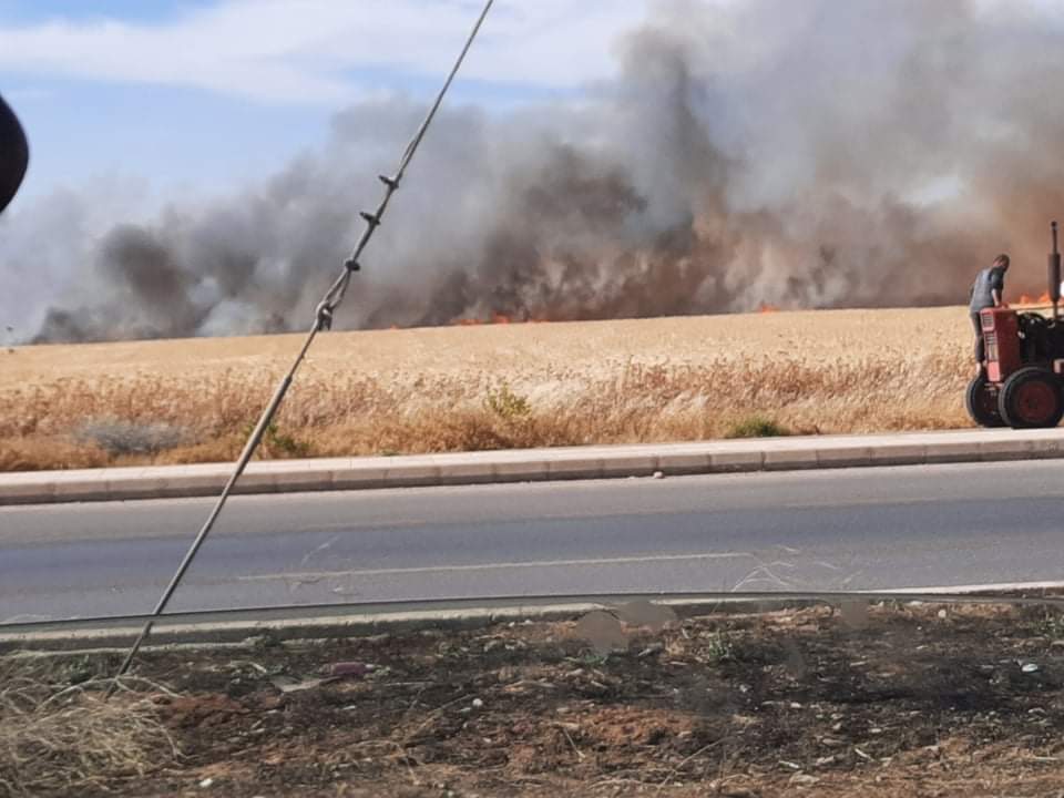 وقال مصدرأن الحريق أتى على مساحات واسعة من الأراضي المزروعة بمحاصيل القمح ملحقه أضراراً مادية كبيرة دون وقوع إصابات بالأرواح.