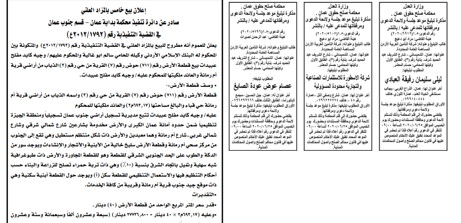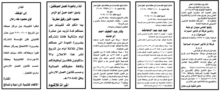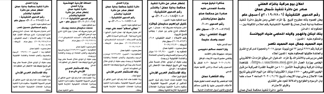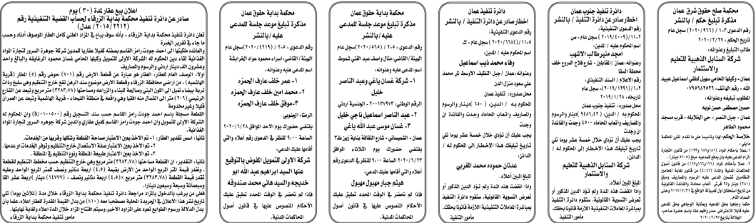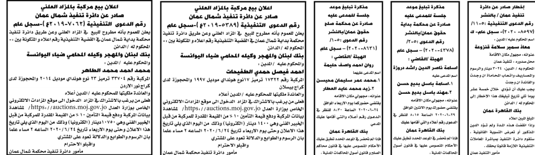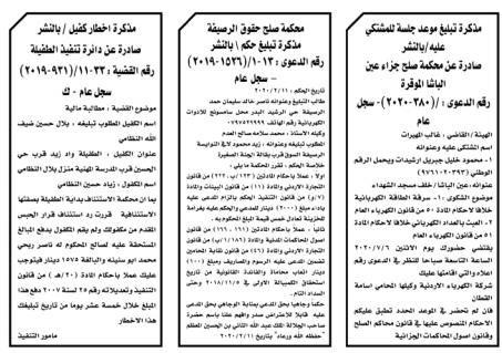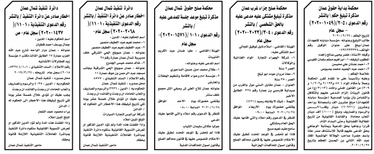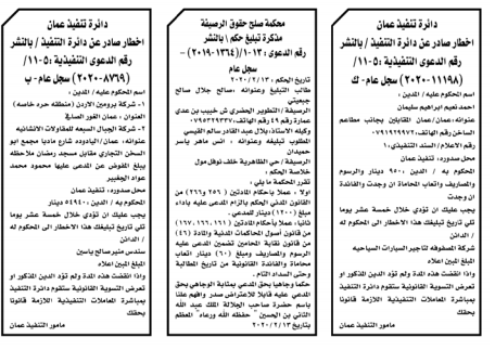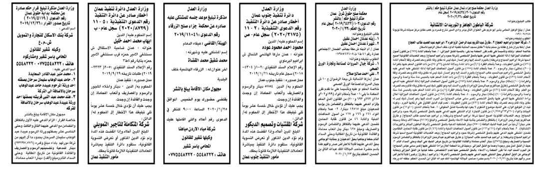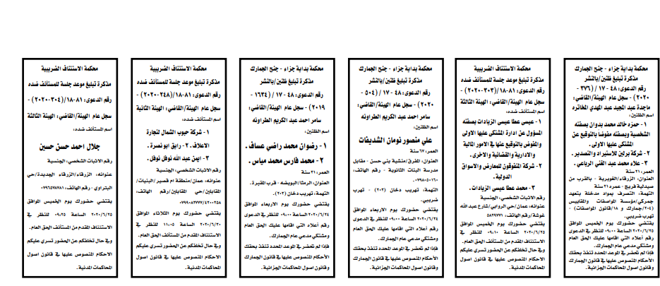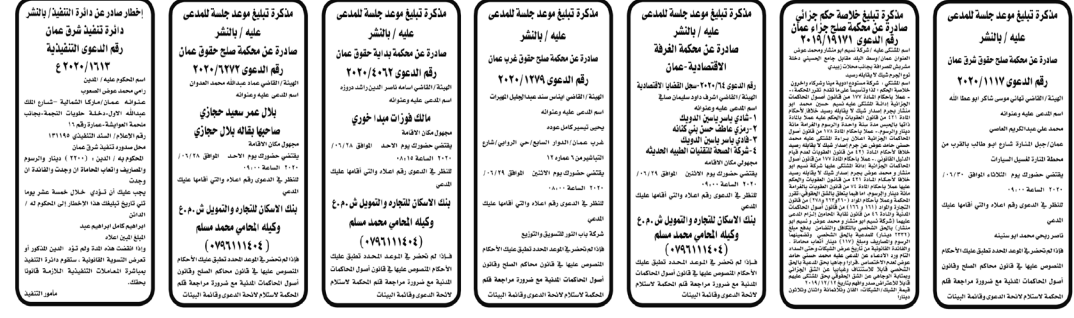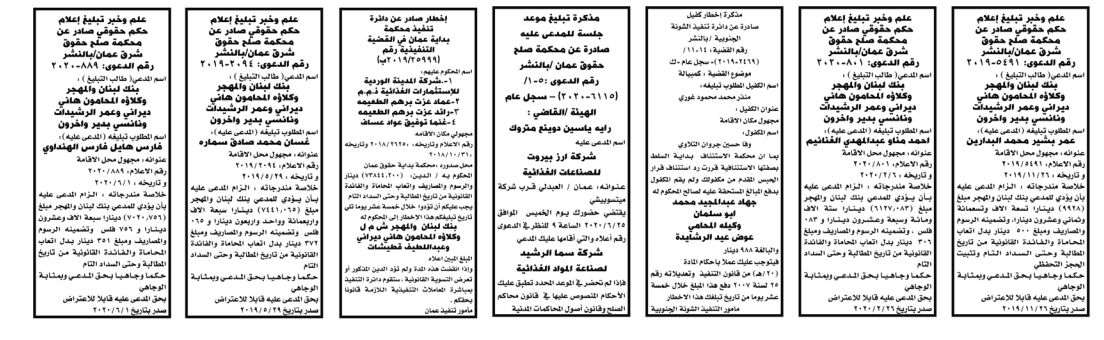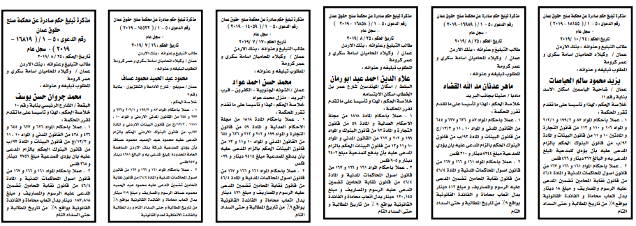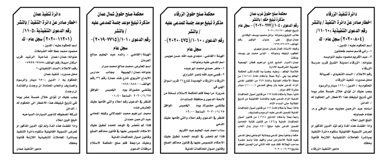 وتضمنت مذكرات الطلب بعض الاحكام الصادرة غيابياً إضافة إلى إخطارات وإشعارات صادرة عن دوائر التنفيذ بحق مدعى عليهم أشخاص كانوا أم شركات. اسماء