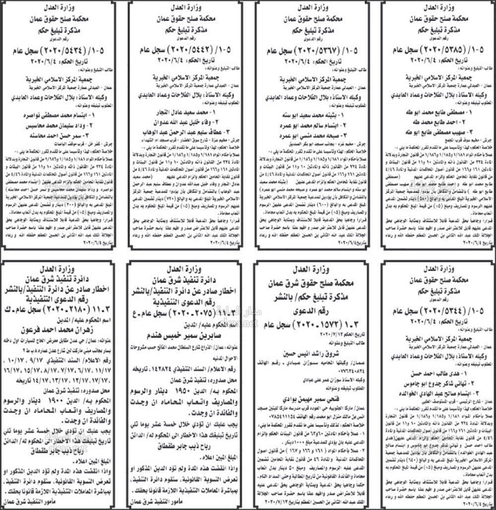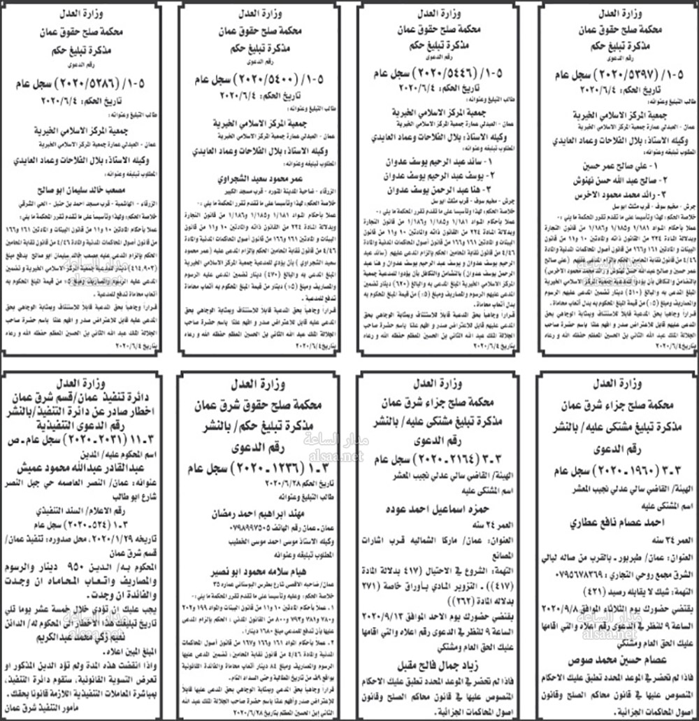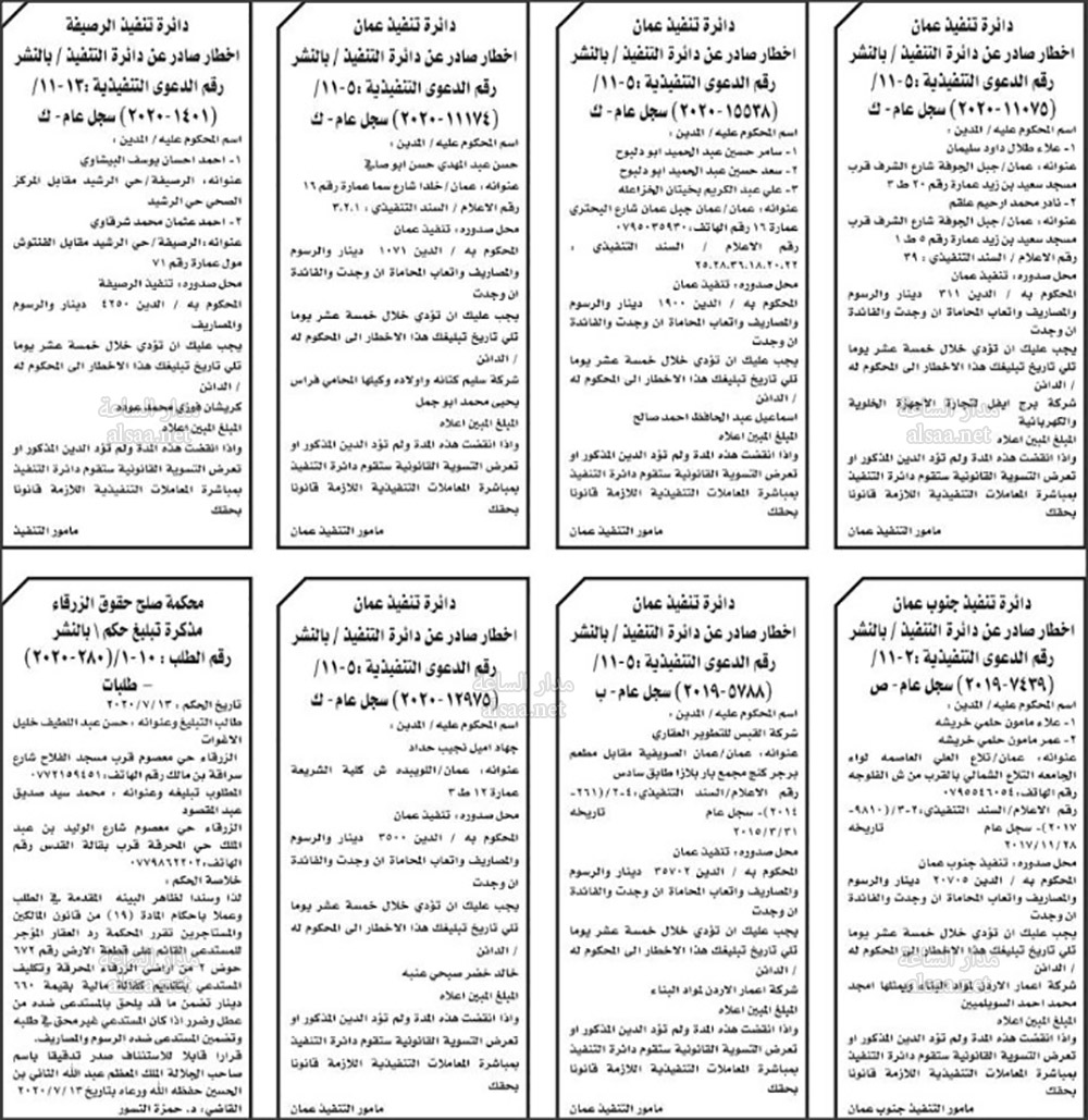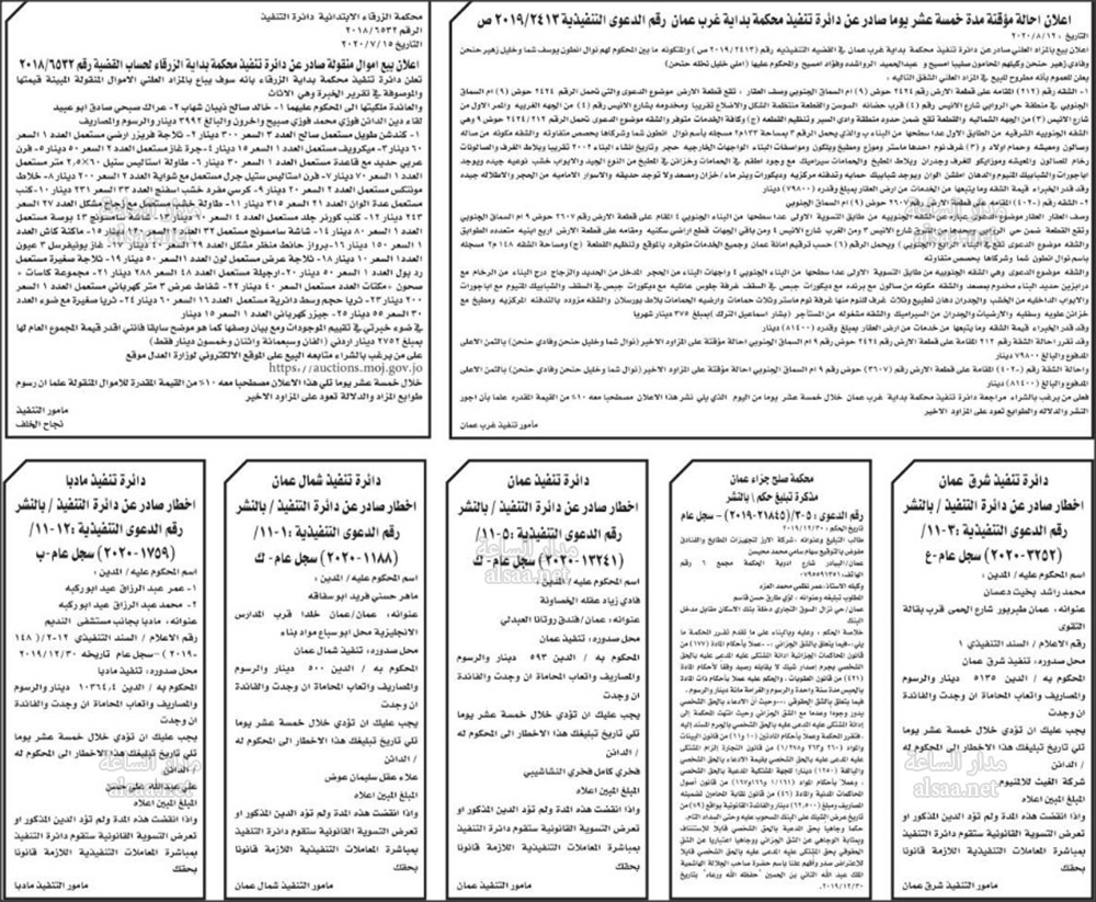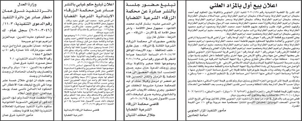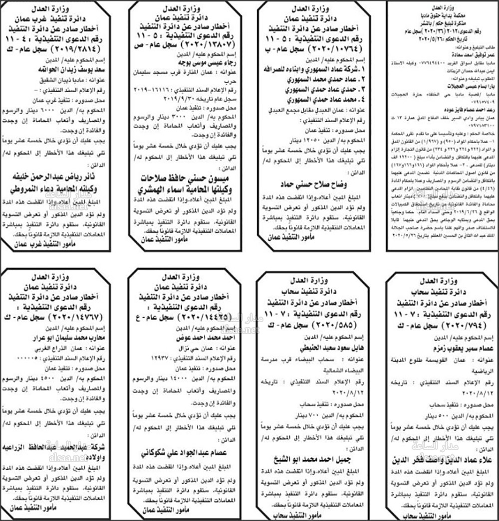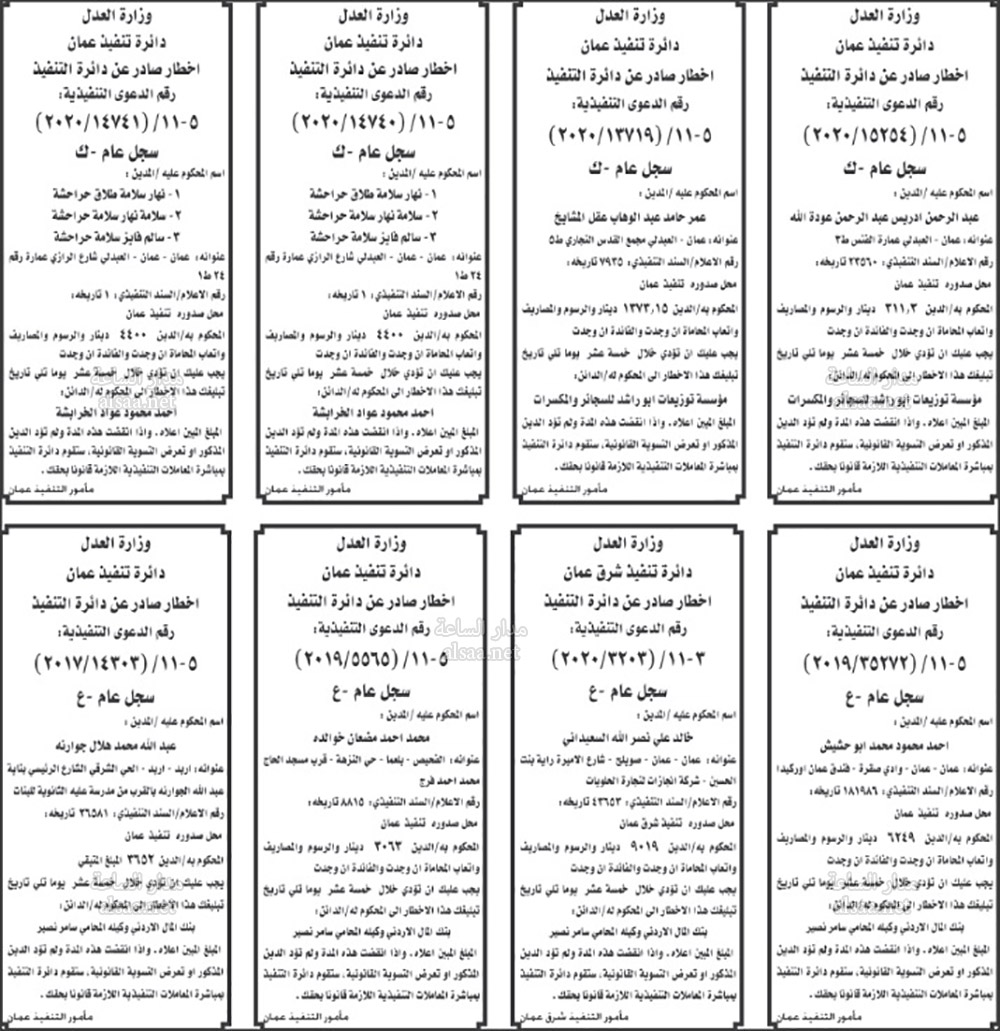 تنفيذ قضائي وإنذارات ومذكرات تبليغ حضور جلسات محاكمة لأردنيين (أسماء)