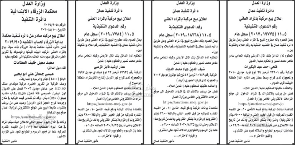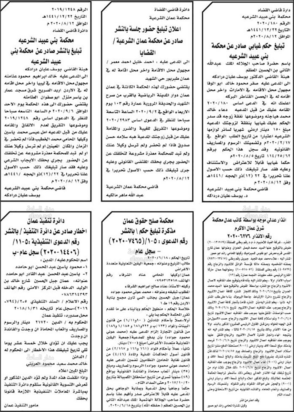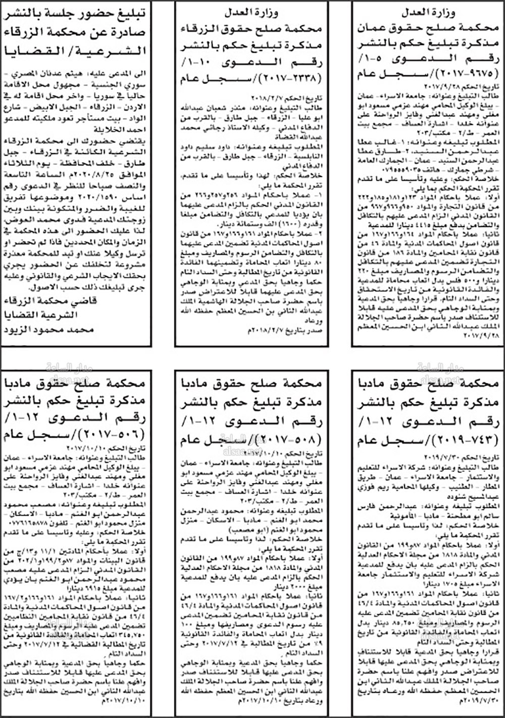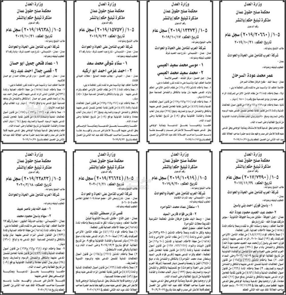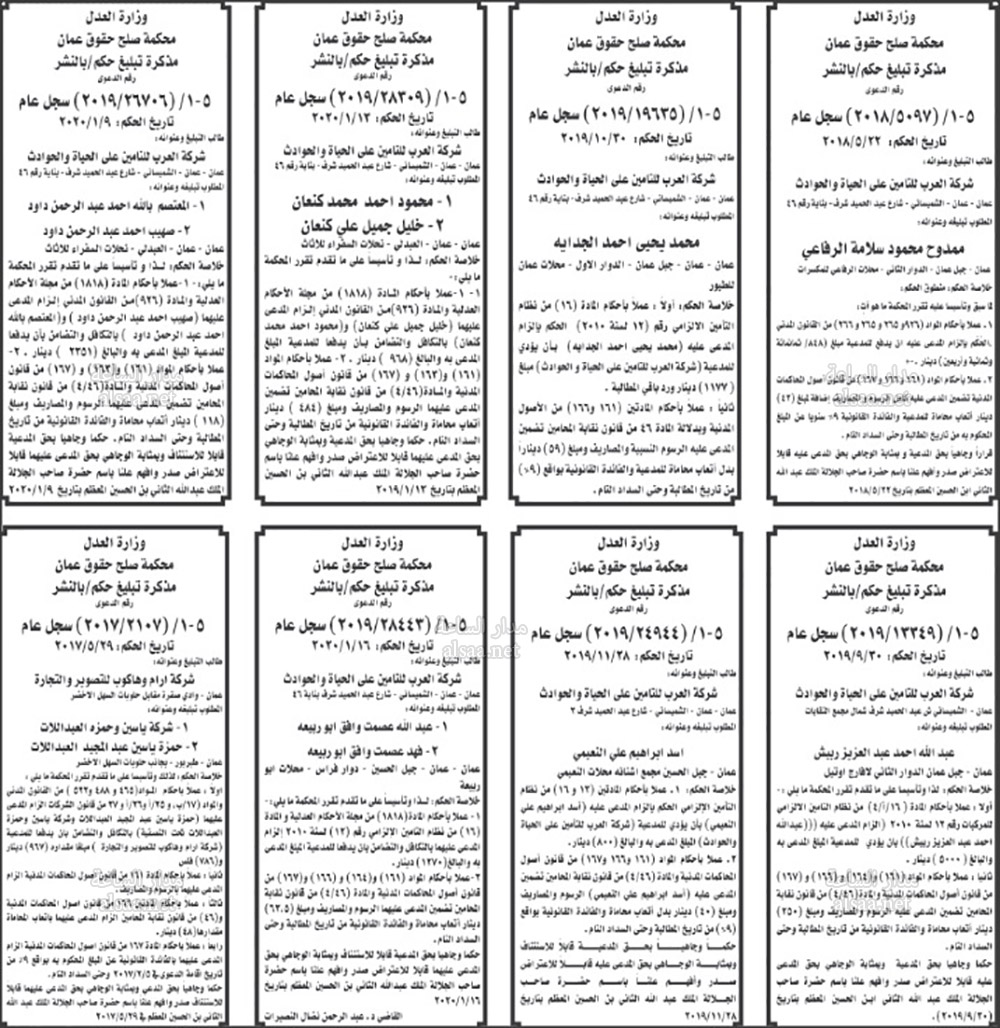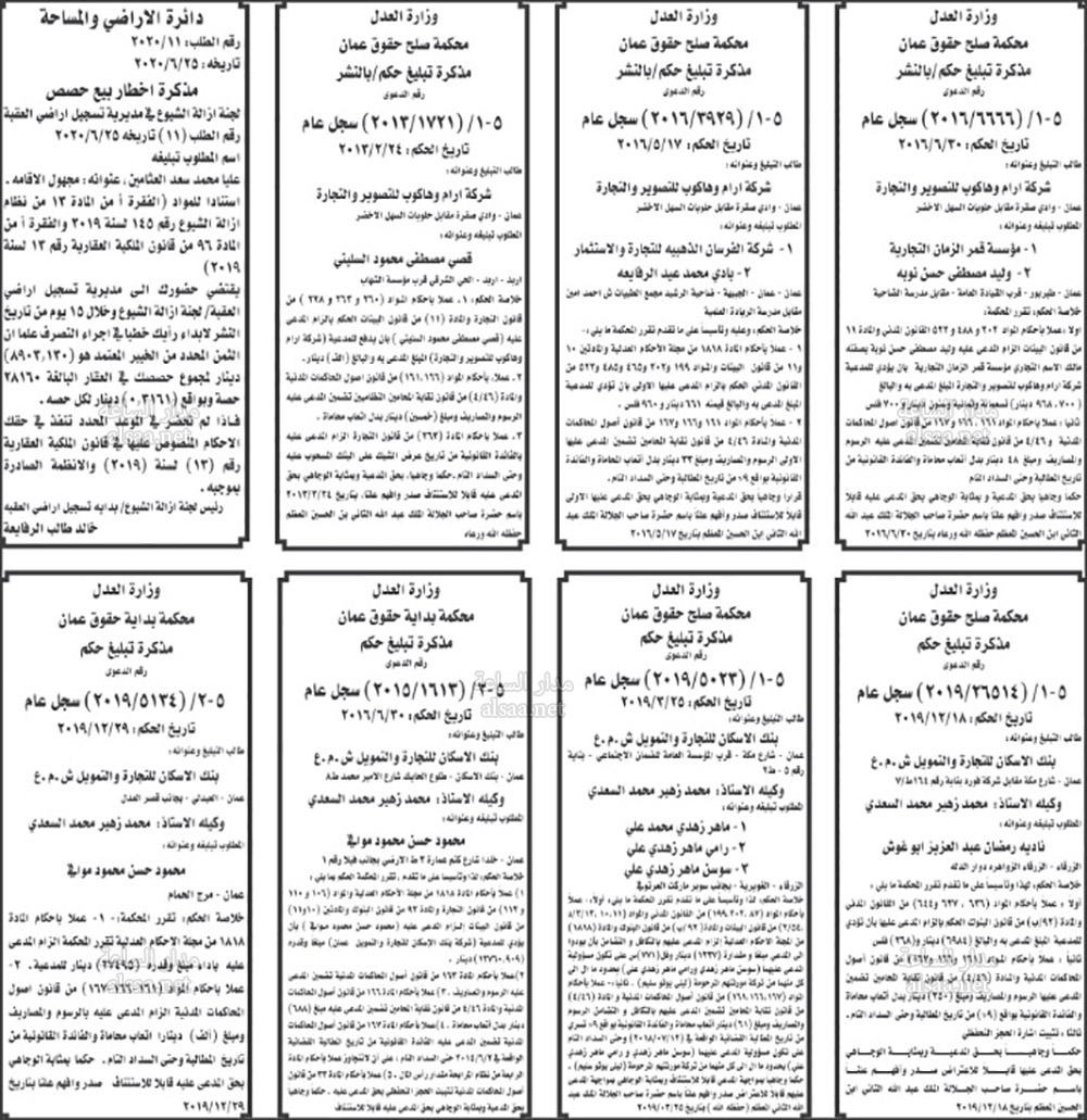 تنفيذ قضائي وإنذارات ومذكرات تبليغ حضور جلسات محاكمة لأردنيين (أسماء)