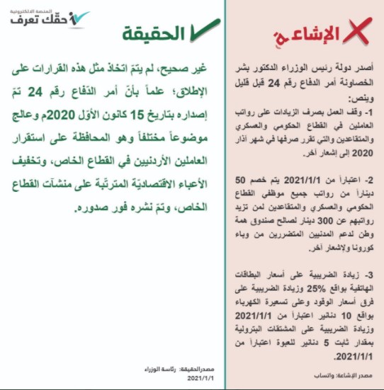 هرمنا – نفت الحكومة عبر منصة “حقك تعرف” الجمعة، اتخاذها قرارات بوقف صرف الزيادات على رواتب العاملين في القطاع العام وفرض اقتطاعات وضرائب جديدة.