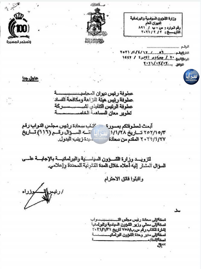 وجهت النائب زينب البدول عددا من الأسئلة لشركة تطوير معان ، تضمنت توضيح معلومات حول حجم الإنفاق والإيرادات والأرباح، وآليات الرقابة والتدقيق المالي، وحجم الذمم المالية المترتبة على المستثمرين ، وحجم الإنفاق في المسؤولية المجتمعية ومعايير توجيه الدعم، كما تضمنت آخر المستجدات في ملف التجاوزات والمخالفات المتعلق بملف عطاء المجمع السكني الطلابي ، والمحال إلى هيئة النزاهة والفساد منذ خمس سنوات ، إلى جانب توضيح حجم الرواتب والمكافآت والحوافز الشهرية والسنوية لرئيس وأعضاء مجلس الإدارة ورئيسها التنفيذي وكادرها الوظيفي ، ومعايير التعيينات لعدد من المدراء.