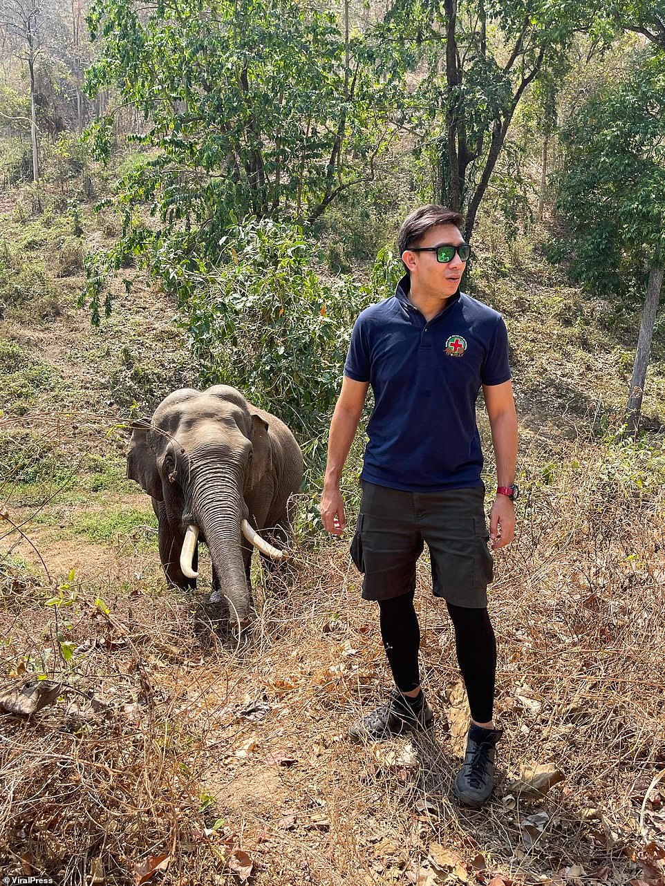 وفي وقت سابق من هذا الشهر، كان الطبيب باتارابول يقوم بدوريات في المنطقة عندما سمع صوت الفيل الذي تعرّف عليه بعد 12 عاماً من الحادثة، فمدّ خرطومه لتحيّته والتواصل معه.