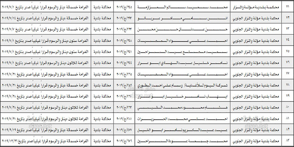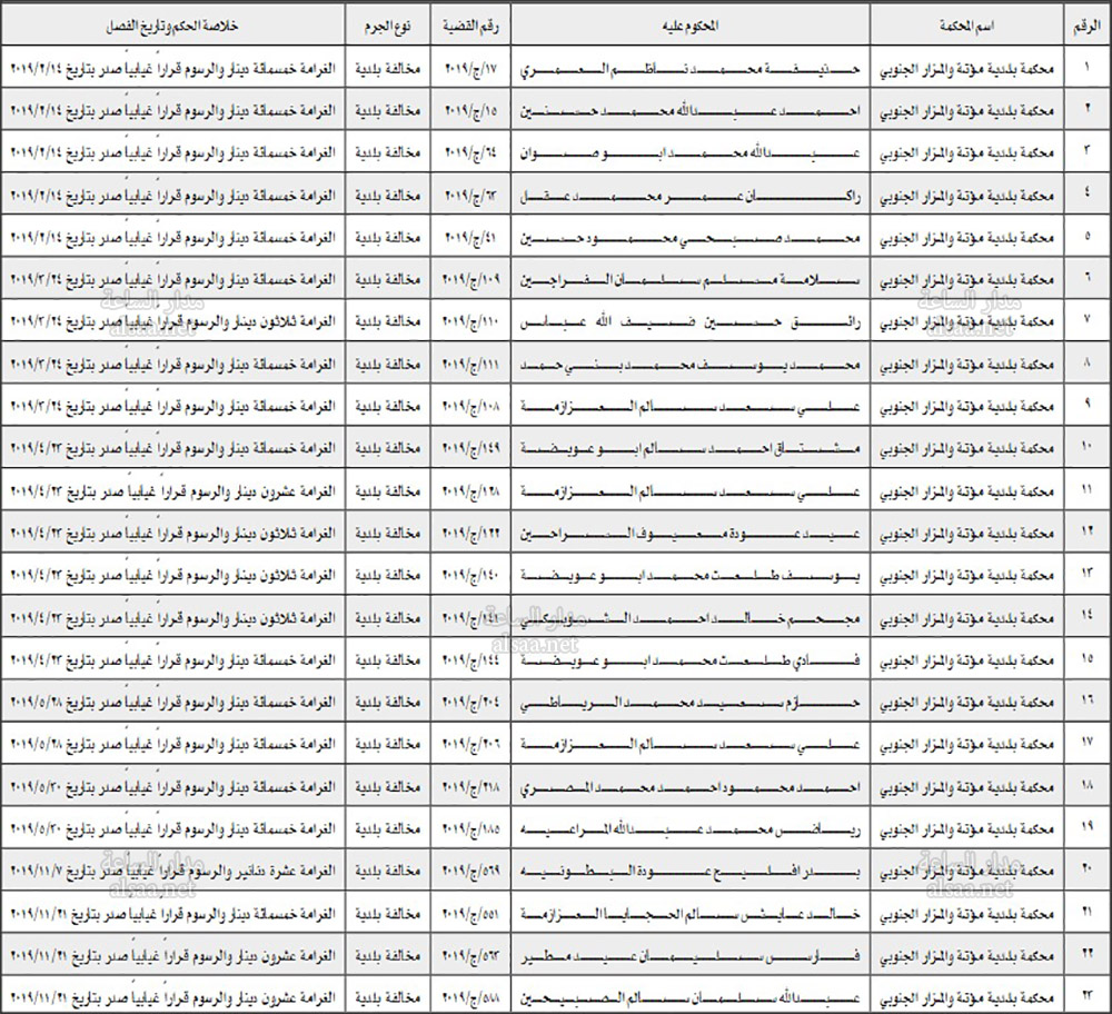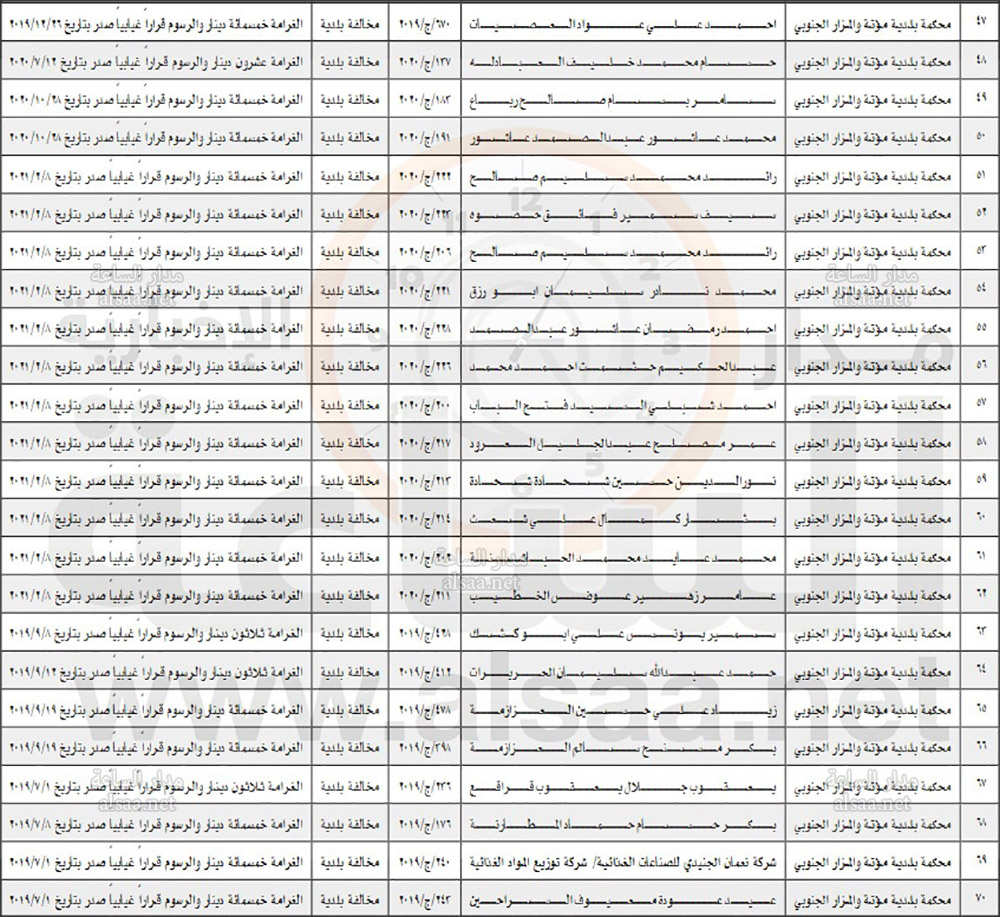 هرمنا – دعت محكمة بلدية مؤتة والمزار الجنوبي التالية اسماؤهم مراجعتها.