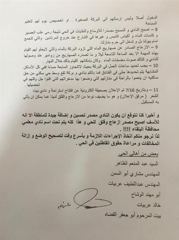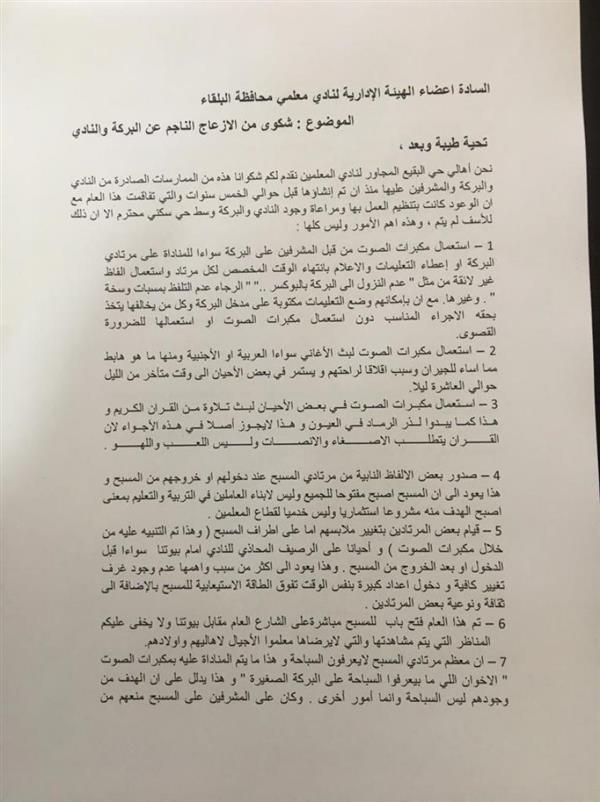 اشتكى عدد من اهالي السلط بمنطقة البقيع على نادي معلمي البلقاء بسبب تحول النادي الى استراحة بيت الشعر.