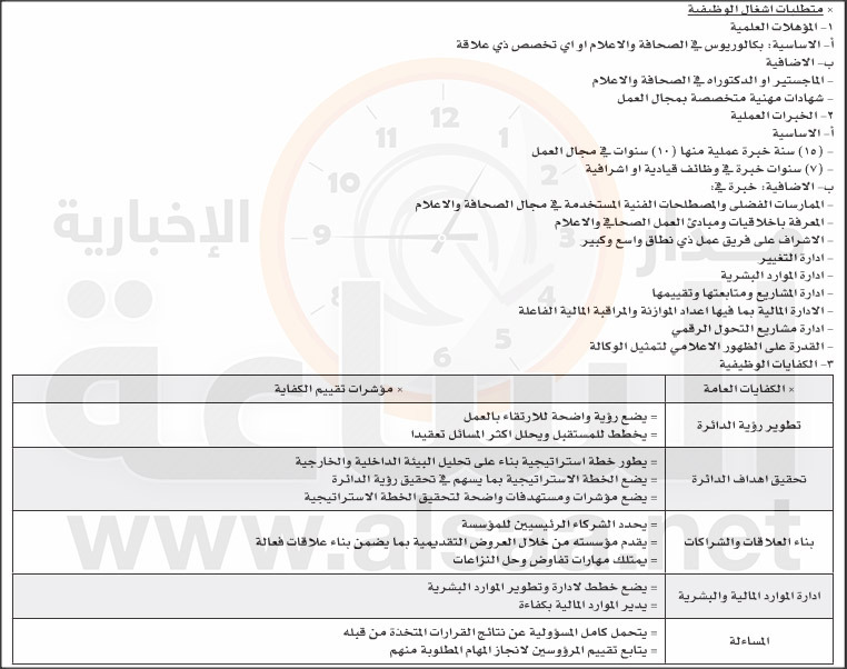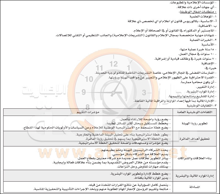 أعلنت رئاسة الوزراء عن توافر ثلاثة شواغر قيادية في مجال الاعلام.