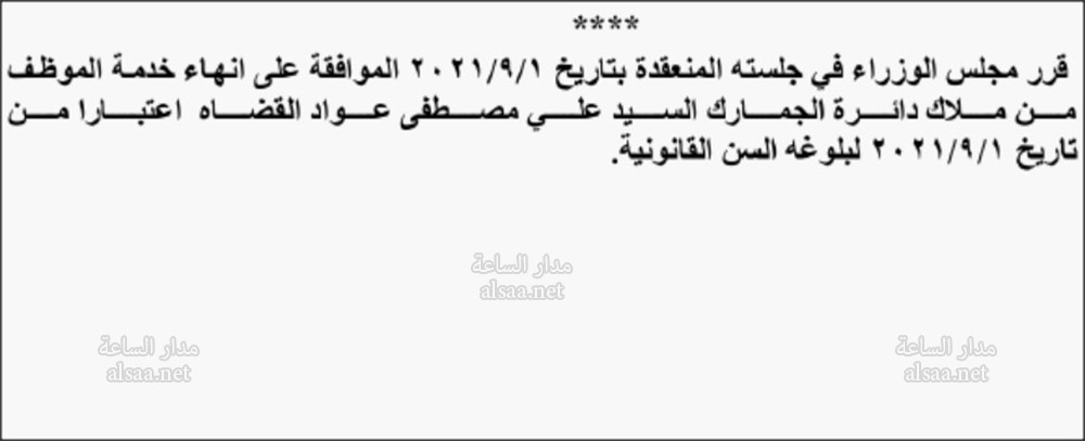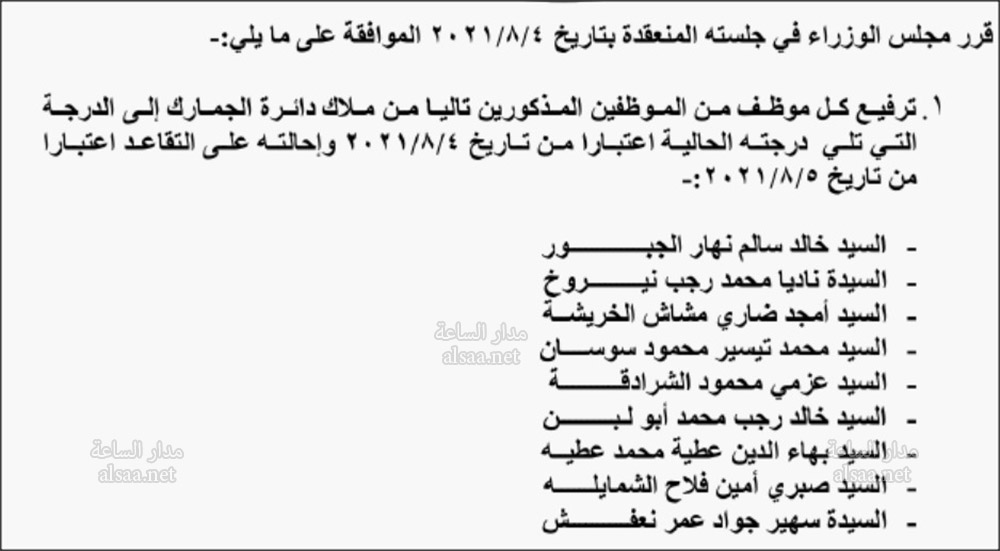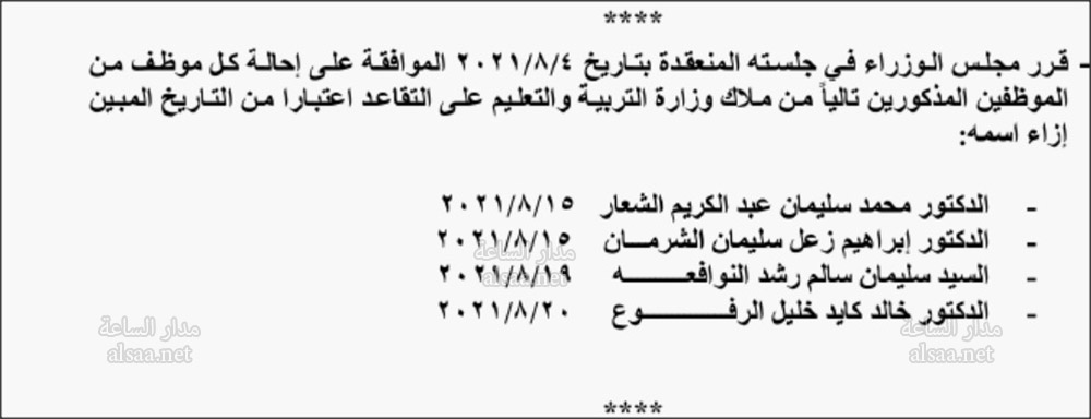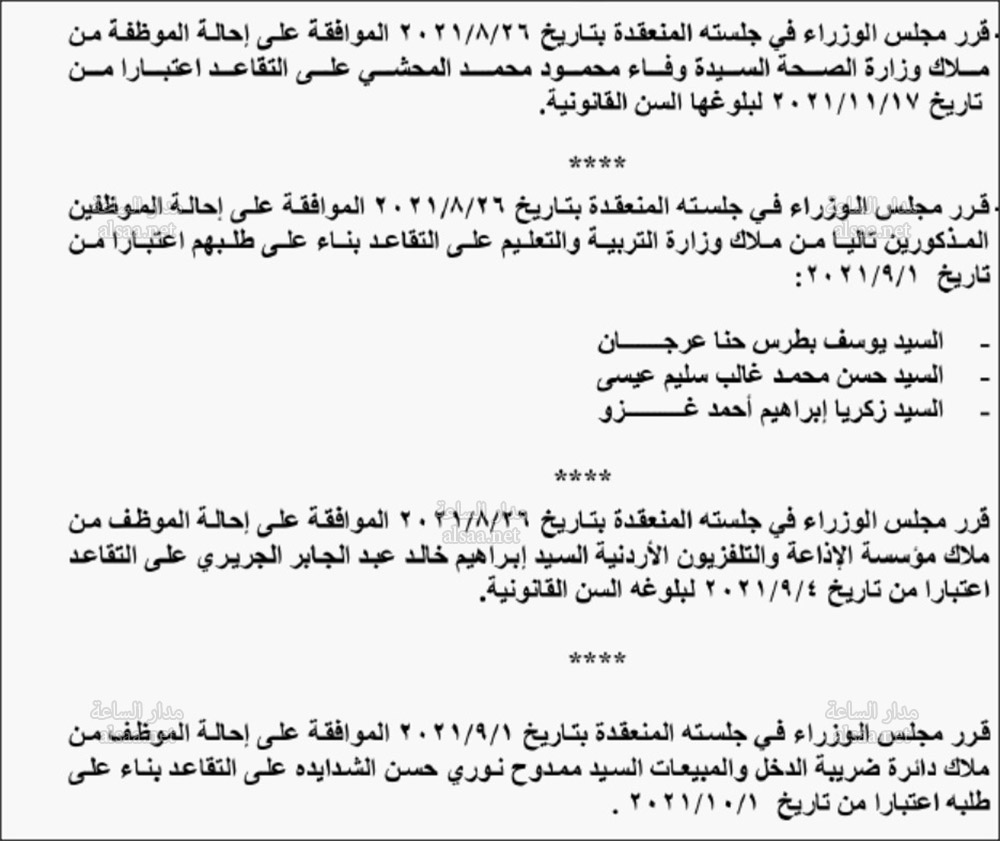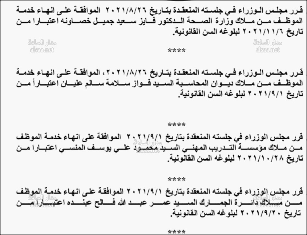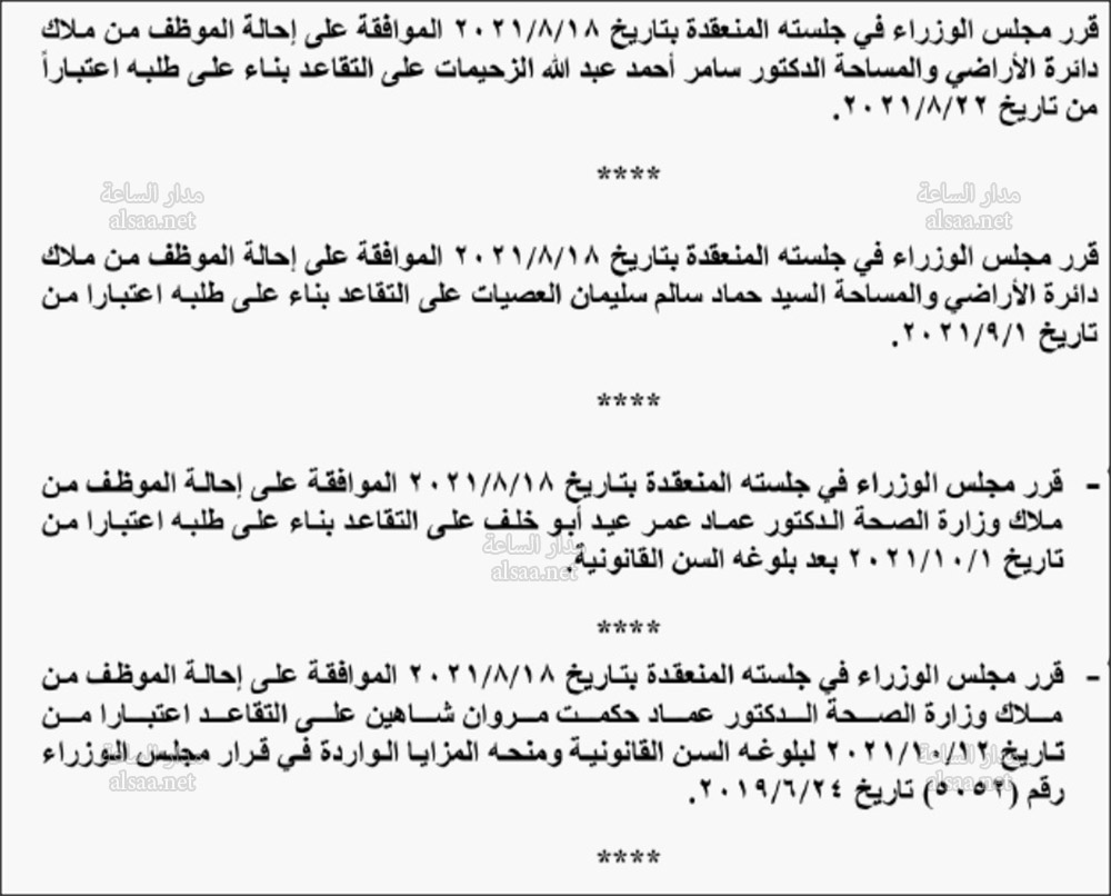 هرمنا - قرر مجلس الوزراء إحالة موظفين في عدد من الوزارات والدوائر إلى التقاعد.وتاليا الاسماء:
