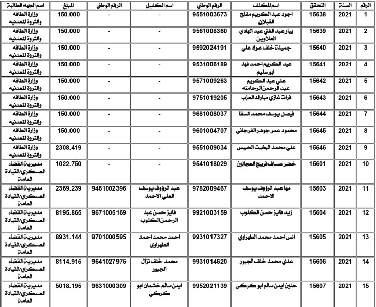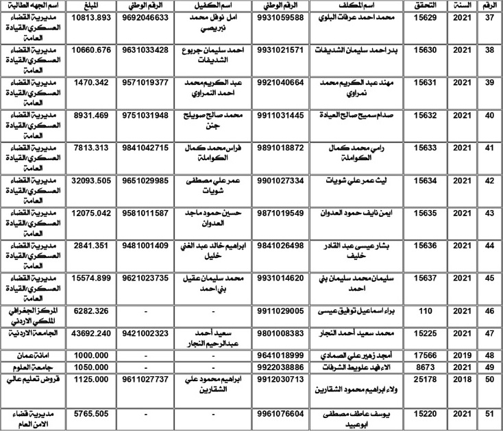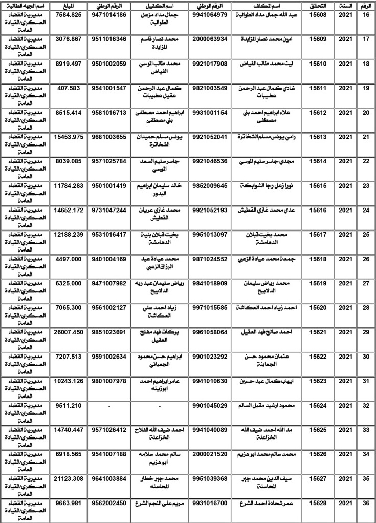 وجاء في مطالبة الشخانبة ان مديرية القضاء العسكري ومديرية الامن العام هما من الجهات الطالبة.. وتاليا الاسماء: