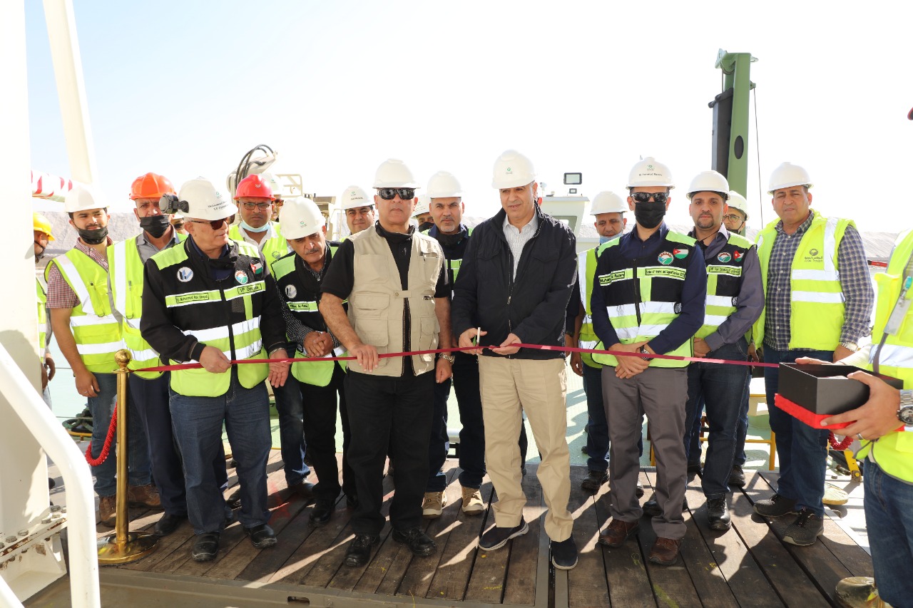 هرمنا – دشن رئيس مجلس إدارة شركة البوتاس العربية، المهندس شحادة أبو هديب، وبحضور الرئيس التنفيذي الدكتور معن النسور، الحفارة المائية الجديدة “اليرموك”، وذلك في موقع عملها في ملاّحة ترسيب الملح الأولى (SP0A) البالغ مساحتها 15 كيلو متر مربع، ضمن نظام الملاحات الشمسية في الشركة.