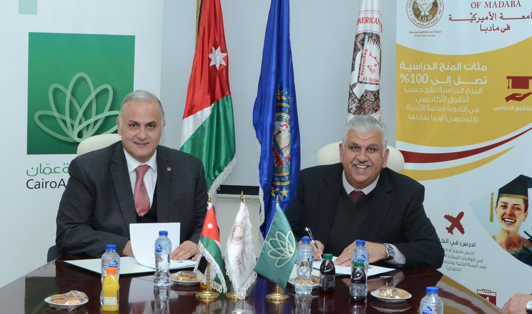 ووقع الاتفاقية عن بنك القاهرة عمان الرئيس التنفيذي الاستاذ كمال البكري وعن الجامعة الامريكية رئيس الجامعة الأستاذ الدكتور مأمون عكروش.