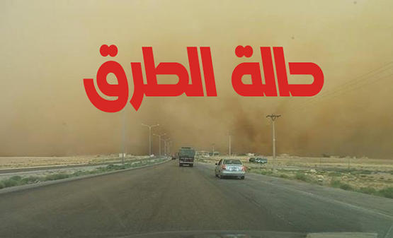 *الطريق الصحراوي غبار كثيف ومدى الرؤيا 15 متر